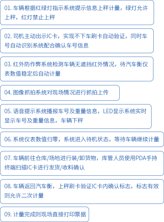 ● 采用先進(jìn)的紅外光感技術(shù),檢測車輛前輪后輪有無超出衡器范圍、后車是否緊跟壓秤等情況,規(guī)范計(jì)量流程。