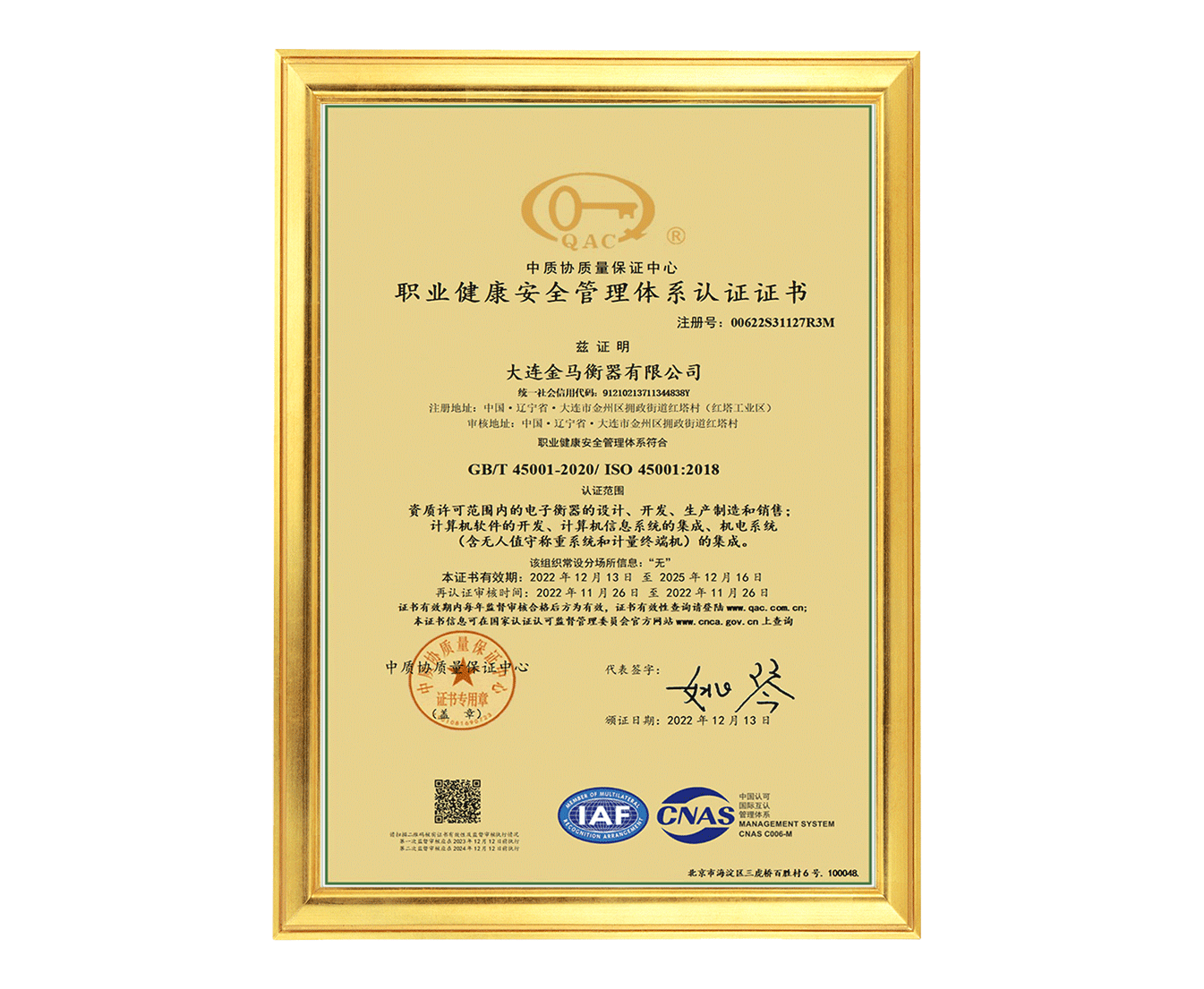 職業(yè)健康安全管理體系認(rèn)證證書(shū)