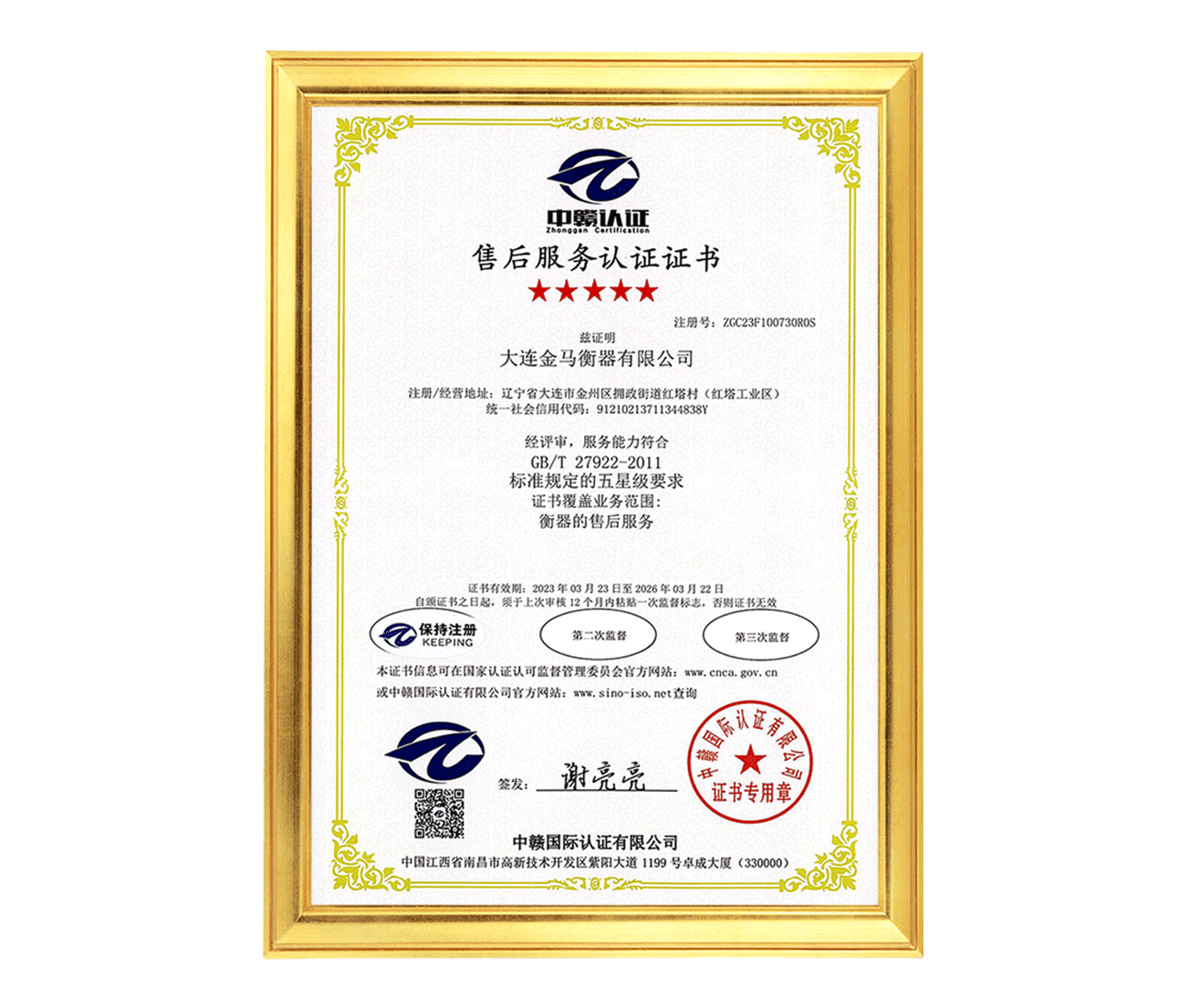 五星售后服務(wù)認(rèn)證