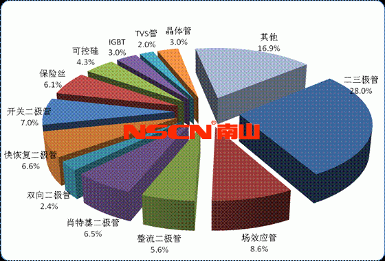 通過圖(4)可以看出,目前半導體分立器件用戶需求較多的二三極管,而且年度采購需求量非常旺盛。隨著電子整機、消費類電子產(chǎn)品等市場的持續(xù)升溫,半導體 分立器件仍有很大的發(fā)展空間,從發(fā)展趨勢看,無論是全球還是中國,分立器件在電子信息產(chǎn)品制造業(yè)中銷售額度所占比例正在逐步下降,分立器件產(chǎn)量和產(chǎn)值的增 長速率要低于整機系統(tǒng)的增長速率。另一方面,整機系統(tǒng)的快速發(fā)展,也為分立器件行業(yè)提供了新的市場商機。特別是全球電子整機對節(jié)能、環(huán)保需求的不斷增長, 這一方面帶動了分立器件產(chǎn)品的需求增長,另一方面也帶動了市場產(chǎn)品結(jié)構(gòu)的快速升級。整機系統(tǒng)進一步向小型化、集成化方向發(fā)展的趨勢,對分立器件也提出了新 的要求,片式貼裝器件已經(jīng)成為行業(yè)發(fā)展的主流。