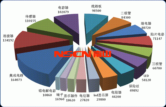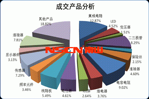 根據(jù)數(shù)據(jù)中心熱門搜索產(chǎn)品數(shù)據(jù)以及成交產(chǎn)品對比分析計算得出,排名靠前的幾類成交產(chǎn)品分別為集成電路、二三極管、電容電阻、連接器等。當然綜觀全年的的成 交數(shù)據(jù)來看,各類產(chǎn)品的成交量、成交金額均屬行業(yè)熱門產(chǎn)品。這一切都要歸功于殺手級產(chǎn)品,如照明燈具、汽車電子、消費類電子等終端電子產(chǎn)品的推動,促使行 業(yè)正向積極的增長。