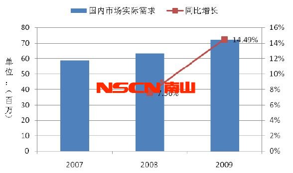 2007-2009年國內(nèi)市場(chǎng)電表實(shí)際需求情況