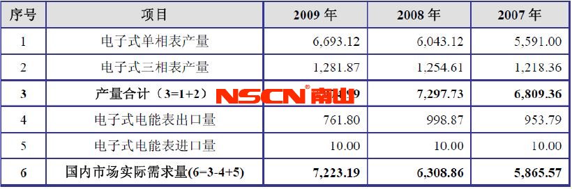 2007-2009年國內(nèi)市場(chǎng)電表供需情況表