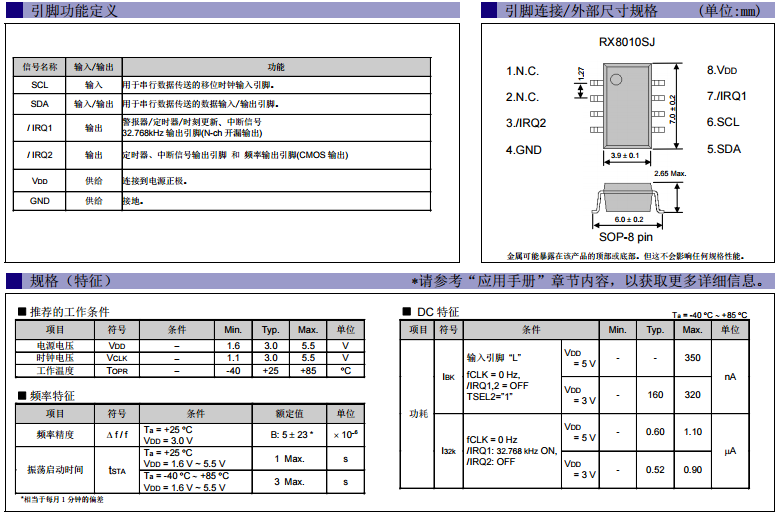 下面就給大家來介紹下RX8010SJ規(guī)格參數(shù):