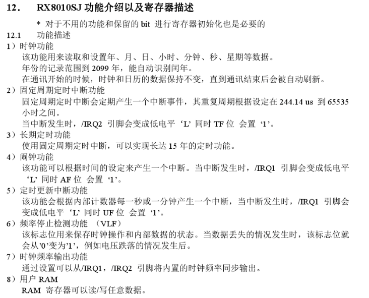 3.RX8010SJ在3V供電電壓,正常運(yùn)行狀態(tài)下的功耗僅160nA,普通CR2032電池一般160mAh電池能量密度,使用紐扣電池供電,可以使用3年以上。保證在產(chǎn)品的生命周期內(nèi)持續(xù)運(yùn)行,提高產(chǎn)品的穩(wěn)定性。