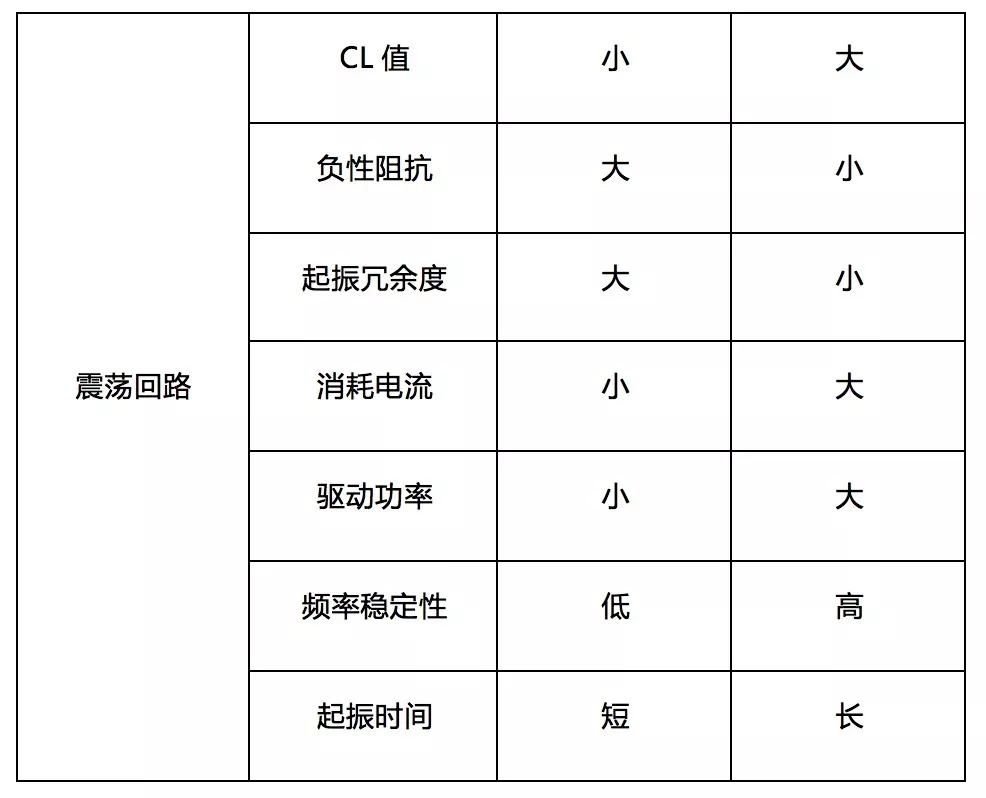 負(fù)載電容是一個(gè)重要的指標(biāo)。對(duì)于實(shí)際情況,小負(fù)載電容值CL(7.0pf)相對(duì)于大負(fù)載電容值的晶體來(lái)說(shuō),是更容易起震的,也有更小的電流損耗。但是頻率穩(wěn)定度會(huì)差一些,可以參考下表: