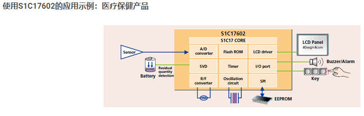 16位微控制器之S1C17000 / 500系列,這是一款低功耗16位微控制器,集成了ROM,RAM,遠程控制器電路,各種I / F和定時器功能。它適用于便攜式設(shè)備內(nèi)置的傳感器系統(tǒng)。