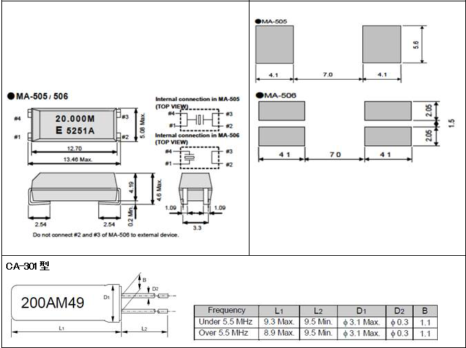 其實對于MA-306,MA-406,MA-505,MA-506,CA-301的停產(chǎn)消息,實屬意料之中的,隨著社會的不斷發(fā)展,市場對于元器件的要求也越來越高,小型化,高精度高穩(wěn)定化是元器件發(fā)展的趨勢,而MA-306,MA-406,MA-505,MA-506,CA-301這幾顆料,雖然在當年才推出時轟動一時,風靡市場,但是依然逃不過時代的巨輪,主要原因是尺寸問題,如下圖所示可以: