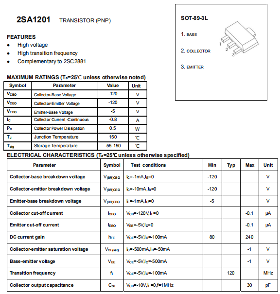 大家好,今天來(lái)介紹下三極管2sa1201,2sa1020。說(shuō)到這很多客戶就要問(wèn)了這兩者為何放在一起比較,其實(shí)是有一件趣事,上周我們客服收到一位老客戶咨詢,他說(shuō)要2sa1020一盤(pán)然后放大倍數(shù)120-240,也沒(méi)說(shuō)封裝就付了款,因?yàn)樗琴Q(mào)易經(jīng)常來(lái)拿貨,既然說(shuō)了2sa1020和放大倍數(shù),那就應(yīng)該沒(méi)錯(cuò)就2sa1020  TO-92L 120~240  絲印A1020 041 這顆長(zhǎng)用料,客戶收到貨后,跟我們要求換貨,原來(lái)他要的居然是2sa1201,不過(guò)說(shuō)起來(lái)這兩者光看型號(hào)確實(shí)容易混淆,但是2sa1201貼片三極管,而2sa1020直插三極管,這就有點(diǎn)無(wú)語(yǔ)了,其實(shí)他當(dāng)時(shí)如果說(shuō)下封裝,我們就可以立馬反應(yīng)過(guò)來(lái) 比如他說(shuō) SOT-89封裝,那我們就會(huì)知道應(yīng)該不是2sa1020,而是2sa1201。這位老客戶也說(shuō)了他是當(dāng)時(shí)忙暈了,他知道是2sa1201,卻打字打成2sa1020。我們也幫他辦理了換貨,下面南山電子就詳細(xì)給大家分享下2sa10202sa1201的規(guī)格書(shū)