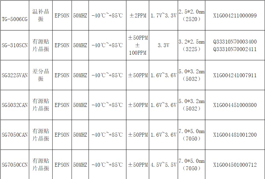 晶振50m是應用比較廣泛的一種頻率,其實常用的50m晶振大部分是50m有源晶振,可以用于銀行金融系統(tǒng),稅控系統(tǒng),遠程抄表系統(tǒng),加密狗,測試儀器,超聲頻,網絡傳輸ADSL,安防(攝像頭,報警器)等,當然熱門的還有比如溫補類型50m晶振TG5006CG 50MHz,南山電子愛普生晶振官方授權中國地區(qū)核心代理商,實現了小批量,快速交付的客戶需求。還是老規(guī)矩,我們深信客戶的體驗度是首要標準,在這里繼續(xù)整理常用愛普生晶振50m的型號給大家選型參考: