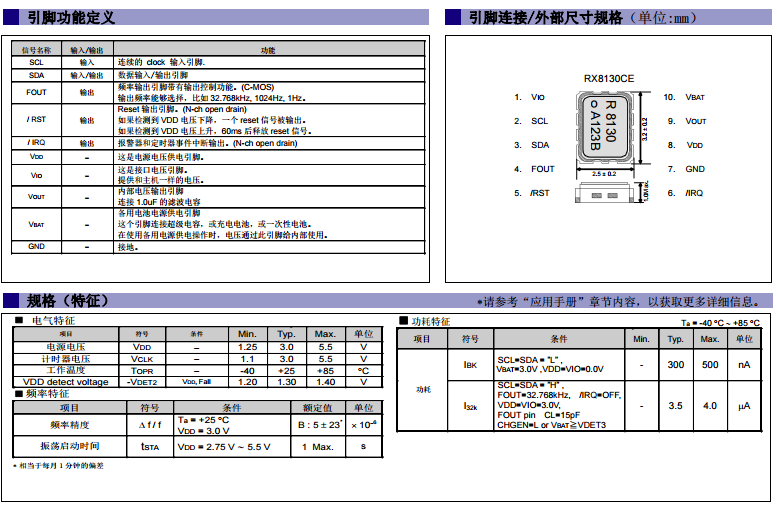 用于便攜可穿戴設(shè)備的時鐘芯片模塊:RX8130CE