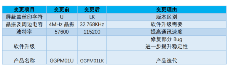 I2C模塊只能用于I2C通訊,不能用于串口通訊;而串口模塊既可以用于I2C通訊,又可以用于串口通訊。只需改變一下管腳1的狀態(tài)即可。GGPM01A 是II2C2模塊,GGPM01U 是串口和II2C2兼容的模塊。而GGPM01LK相比于GGPM01U具有以下優(yōu)勢: