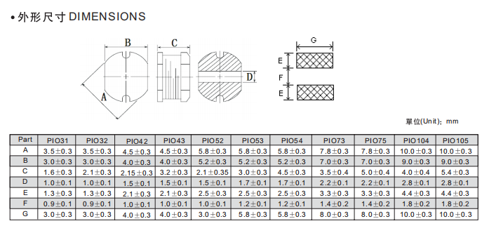 如上圖所示,PIO功率電感的外形尺寸,規(guī)格,精度等大家基本了解了,進(jìn)一步飽和電流,測試電壓等可以具體咨詢我們南山電子??梢钥吹剑琍IO31/32/42/43/52/53/54/73/75/104/105其實(shí)等同于CD31/32/42/43/52/53/54/73/75/104/105