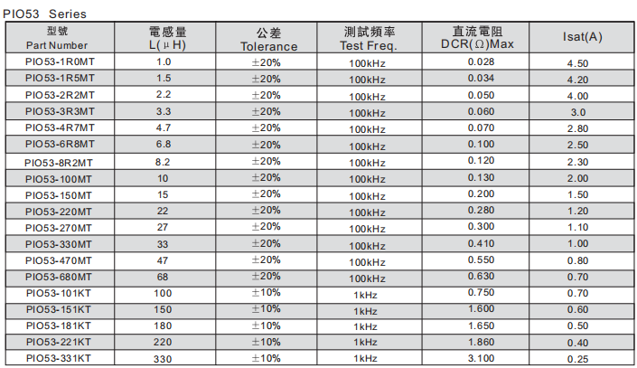 CD53電感,CD53功率電感選型資料指南