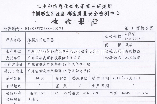 風(fēng)華貼片電容具有第三方檢測報告,歡迎想風(fēng)華電容代理商南京南山客服索取。本資料僅展示中國賽寶實驗室的第三方檢測報告。...