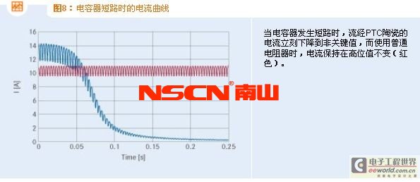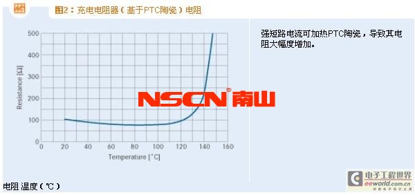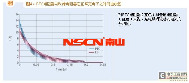 在這兩種情況下,充電電流的時間曲線幾乎相同。PTC陶瓷與固定電阻在電流特性方面的細(xì)微差別的產(chǎn)生原因是: