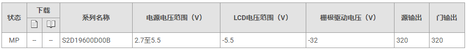 中小型面板驅(qū)動器[S2D19600系列](1片單色TFT驅(qū)動器)