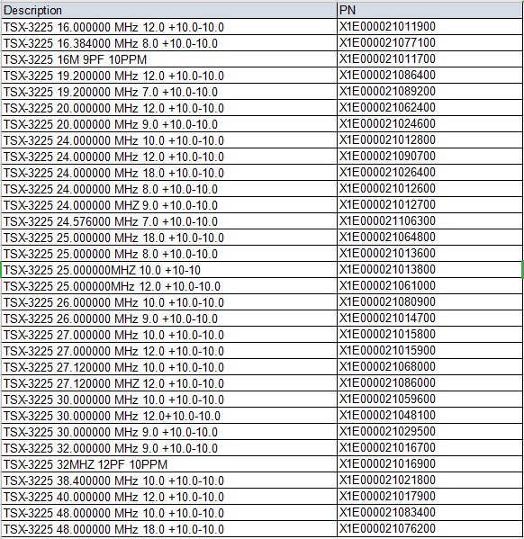 今天給大家介紹適用于便攜式無線傳輸設(shè)備的3225無源晶振TSX-3225。說到3225無源晶振,那么就不得不提下TSX-3225ESPON的TSX-3225產(chǎn)品已經(jīng)非常成熟,已經(jīng)在各個產(chǎn)品各種應(yīng)用環(huán)境中都有成熟的應(yīng)用,業(yè)內(nèi)人都知道,雖然愛普生已經(jīng)開發(fā)出2520甚至更小尺寸2016無源晶振,但是尺寸更小,也代表著制造工藝越發(fā)繁瑣成本的增高,現(xiàn)在很多便攜式產(chǎn)品需要尺寸小,高性能,壽命長,價格適中的貼片晶振,3225已經(jīng)相對而言屬于小尺寸晶振,可以滿足便攜式設(shè)備的要求,價格也比2520,2016要低,厲害的是,TSX-3225無源晶振的成本比5032的也低,所以說TSX-3225是性價比較高的的選擇。TSX-3225常用的型號中TSX-3225 24MHz 12PF±10PPM,TSX-3225 16MHz 12PF 10PPM都是比較常用的兩顆料工作溫度:-40℃ ~ +85℃。TSX-3225系列無源晶振是一款應(yīng)用比較廣泛的愛普生無源晶振。因為其頻率范圍覆蓋16MHz~48MHz。可以用于移動電話,藍(lán)牙,無線-局域網(wǎng),ISM 頻段電臺廣播,MPU時鐘等領(lǐng)域。下面南山電子就把TSX-3225的常用的標(biāo)準(zhǔn)頻率表分享給大家