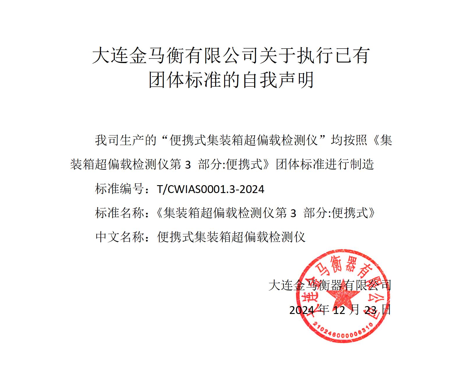 【聲明】大連金馬衡有限公司關于執(zhí)行已有團體標準的自我聲明
