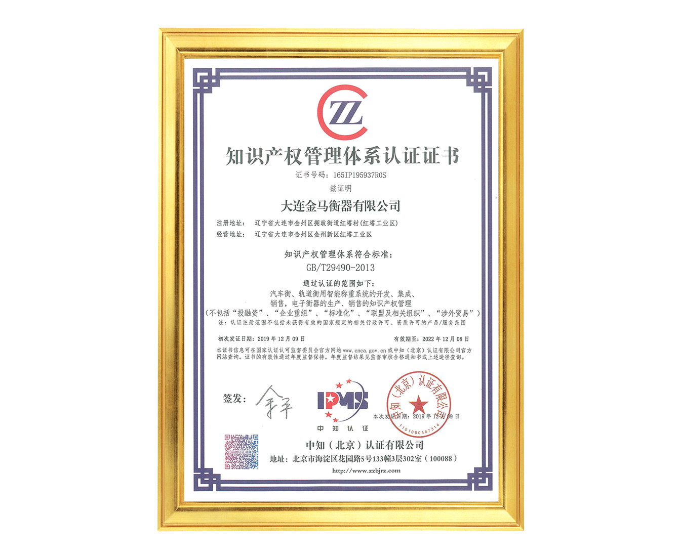 知識產(chǎn)權(quán)管理體系認證證書(貫標(biāo))